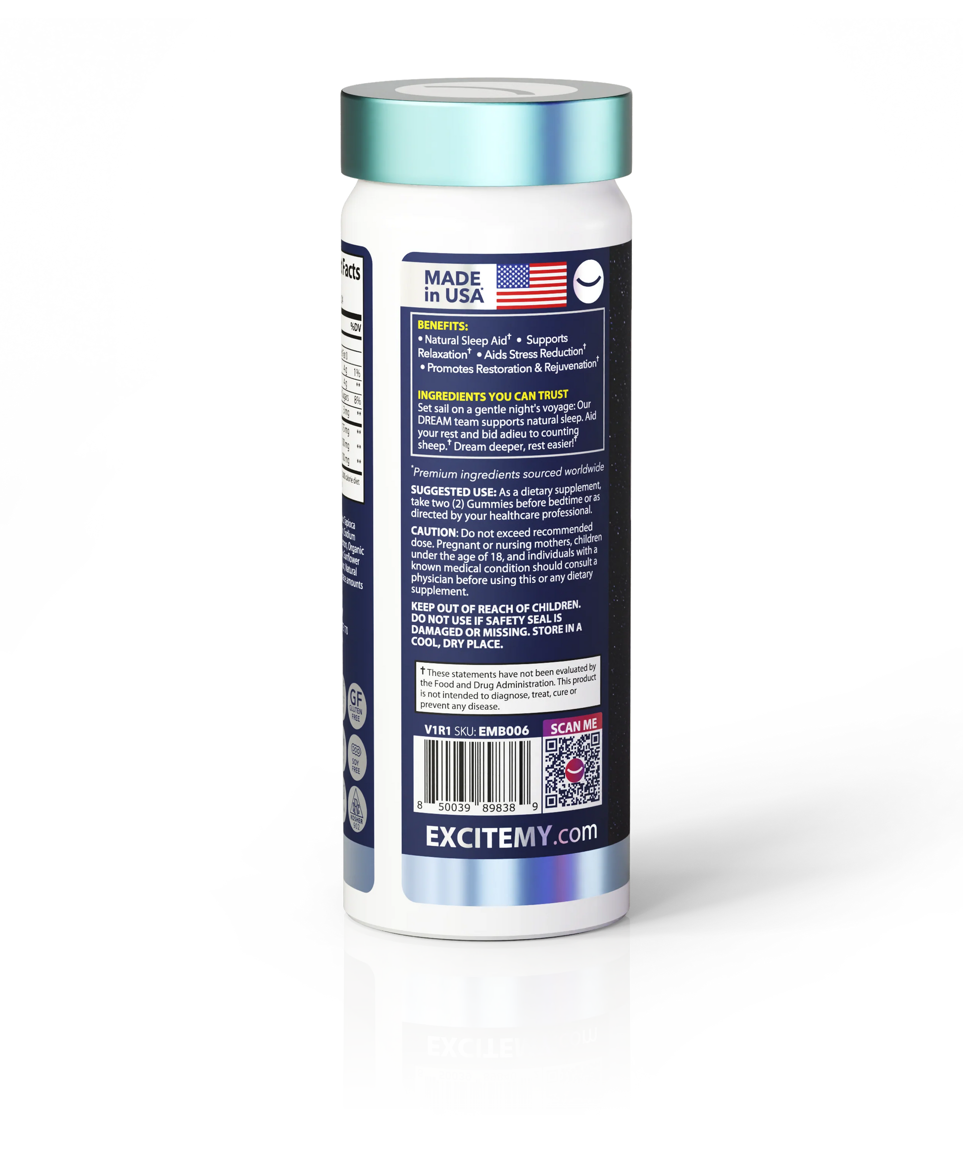 Supports better sleep - Set sail on a gentle night's voyage: Our DREAM team supports natural sleep. Aid your rest and bid adieu to counting sheep. Dream deeper, rest easier!† Melatonin is a natural hormone that plays a crucial role in regulating the sleep-wake cycle. + Melatonin is a hormone produced naturally in the body that helps regulate sleep-wake cycles. Taking melatonin supplements can help improve sleep quality, decrease the time it takes to fall asleep, and alleviate jet lag symptoms. It may also be useful in treating sleep disorders such as insomnia, particularly in individuals with low levels of melatonin.