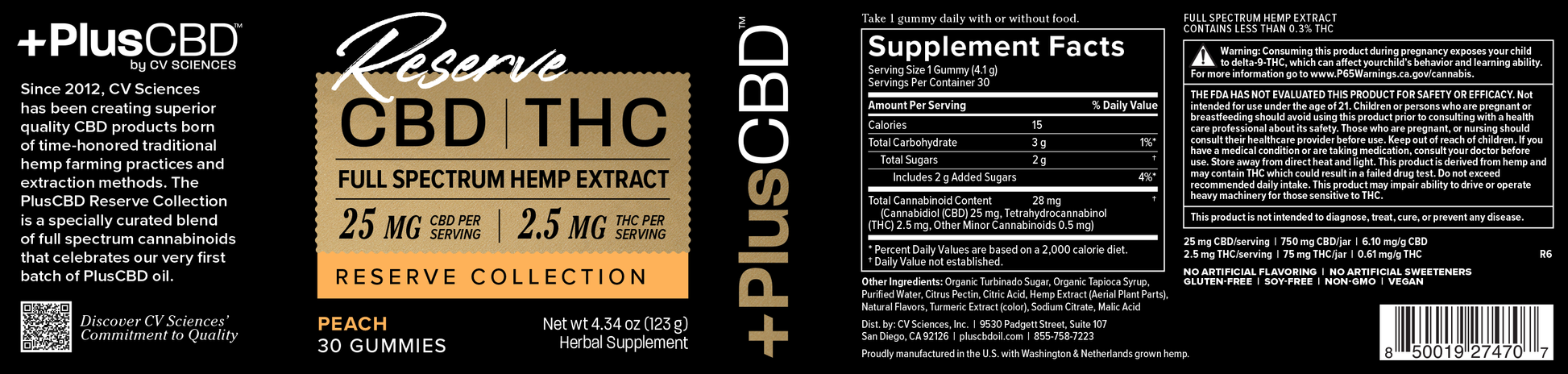 PlusCBD Reserve Full Spectrum Peach Gummies - 30 ct