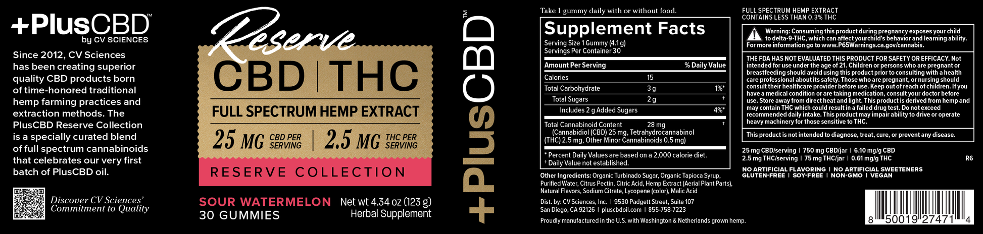 Reserve Collection Hemp Extract Gummies offer consistent servings of CBD in peach and sour watermelon flavors. Our Reserve Collection Gummies are available in a 10:1 CBD to THC ratio for a balanced cannabinoid supplement. Experience less sleeplessness, quicker recovery, deeper relaxation, and a brighter mood with PlusCBD Full Spectrum Hemp Extract Gummies.*. Contains less than 0.3% THC by weight
